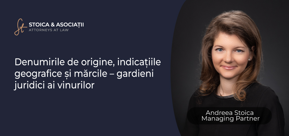 During the conference, Andreea Stoica- Managing Partner - will hold a lecture entitled "Denominations of origin (DO), geographical indications (GI) and brands - legal guardians of wines".