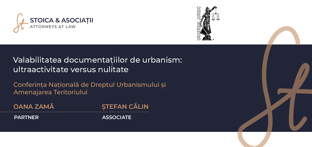 În cadrul Conferinței Naționale de Dreptul Urbanismului și Amenajarea Teritoriului, colegii noștri, Oana Zamă – Partner – și Ștefan Călin– Associate -, vor analiza mâine (10:00–12:30 — Sesiunea I) controversele din practica jurisprudențială legate de ultraactivitatea versus nulitatea documentațiilor de amenajare a teritoriului şi de urbanism.