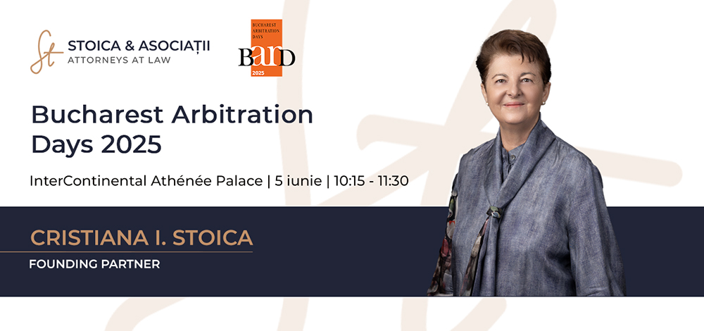 Cristiana I Stoica- Founding Partner - se va număra printre speakerii invitați ai conferinței Bucharest Arbitration Days, cel mai mare eveniment de arbitraj comercial internațional din România, care va avea loc pe 5-6 iunie, la hotelul InterContinental Athénée Palace.