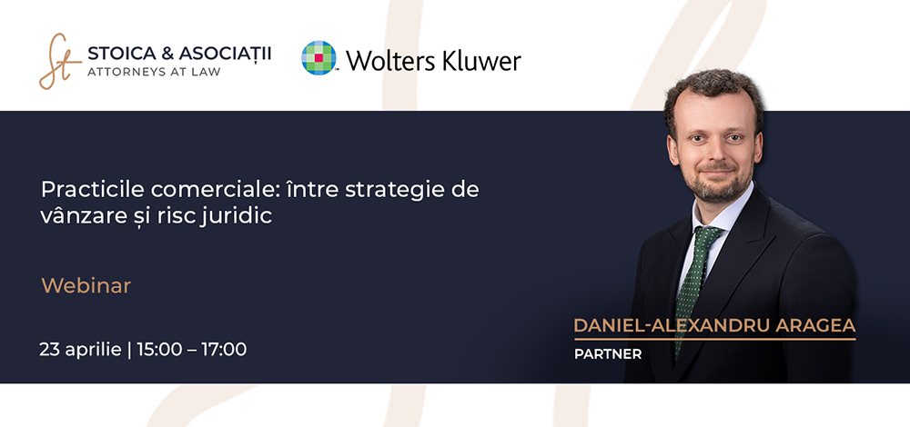 În cadrul webinar-ului Practicile comerciale: între strategie de vânzare și risc juridic care va avea loc pe 23 aprilie, de la 15:00 – 17:00, Daniel-Alexandru Aragea – Partner – va aborda problematica practicilor comerciale utilizate de profesioniști în comerțul cu produse și servicii, din perspectivă juridică și practică.