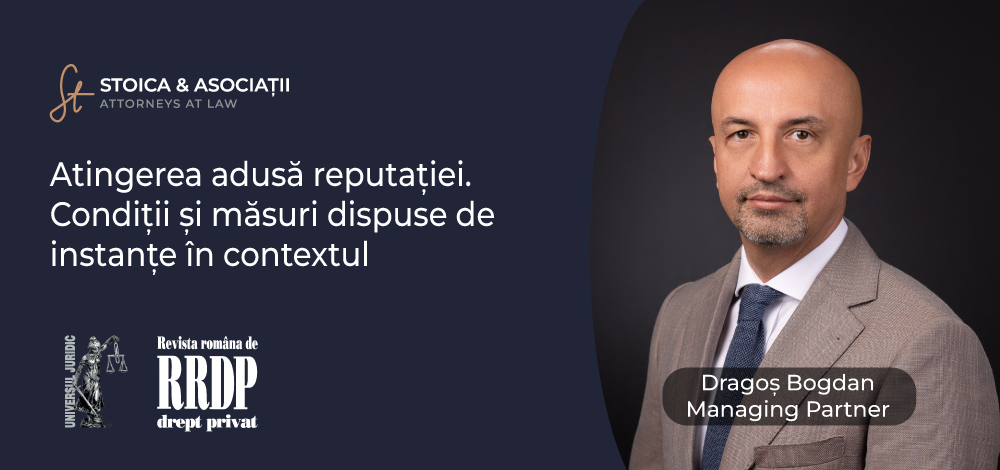 During the first day of the National Civil Law Conference - organized under the auspices of the Romanian Journal of Private Law (RRDP) - Dragoș Bogdan(Managing Partner ) will be a speaker in the first panel, with the theme "The touch brought to reputation. Conditions and measures ordered by the courts in the context of ECHR jurisprudence".