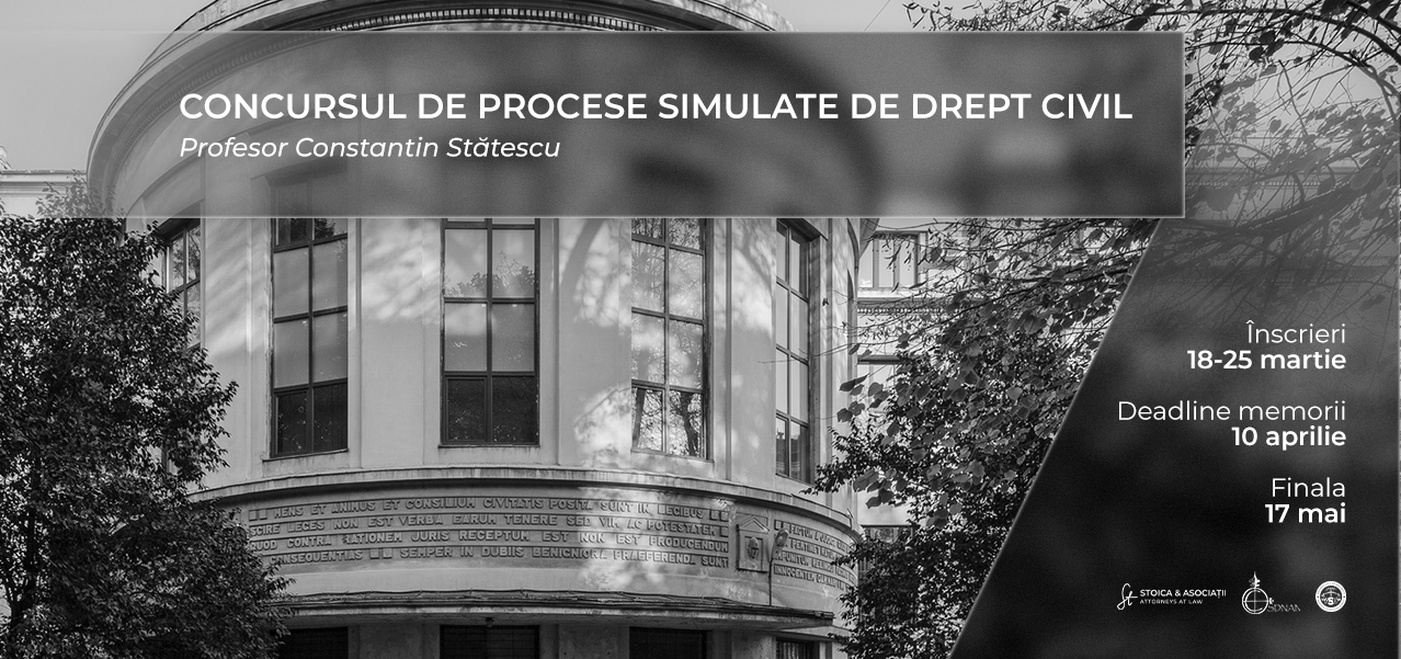 STOICA & ASOCIAȚII, Asociația Studenților în Drept și Centrul pentru studii de drept natural și analiză normativă (CSDNAN) lansează a VIII-a ediție a Concursului de procese simulate de drept civil „Profesor Constantin Stătescu”.