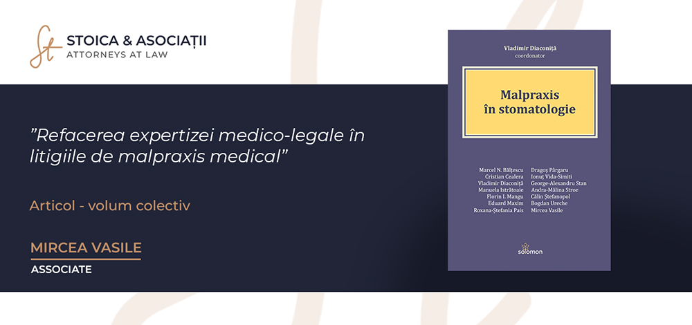 Mircea Vasile – Associate– este unul din autorii lucrării, semnând articolul "Refacerea expertizei medico-legale în litigiile de malpraxis medical”, prin care descrie particularitățile procedurale referitoare la efectuarea expertizei medico-legale în litigiile de malpraxis medical, insistând asupra regulilor derogatorii de la dreptul comun aplicabile efectuării unei noi expertize în cauză.