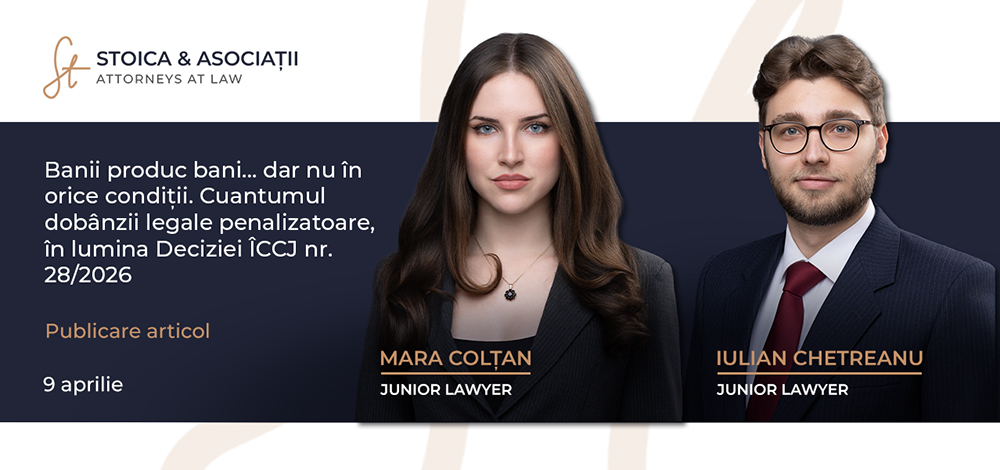 An article by Mara Colțan - mcoltan@stoica-asociatii.ro – and Iulian Chetreanu - ichetreanu@stoica-asociatii.ro - Junior Lawyers - STOICA & ASOCIAȚII.