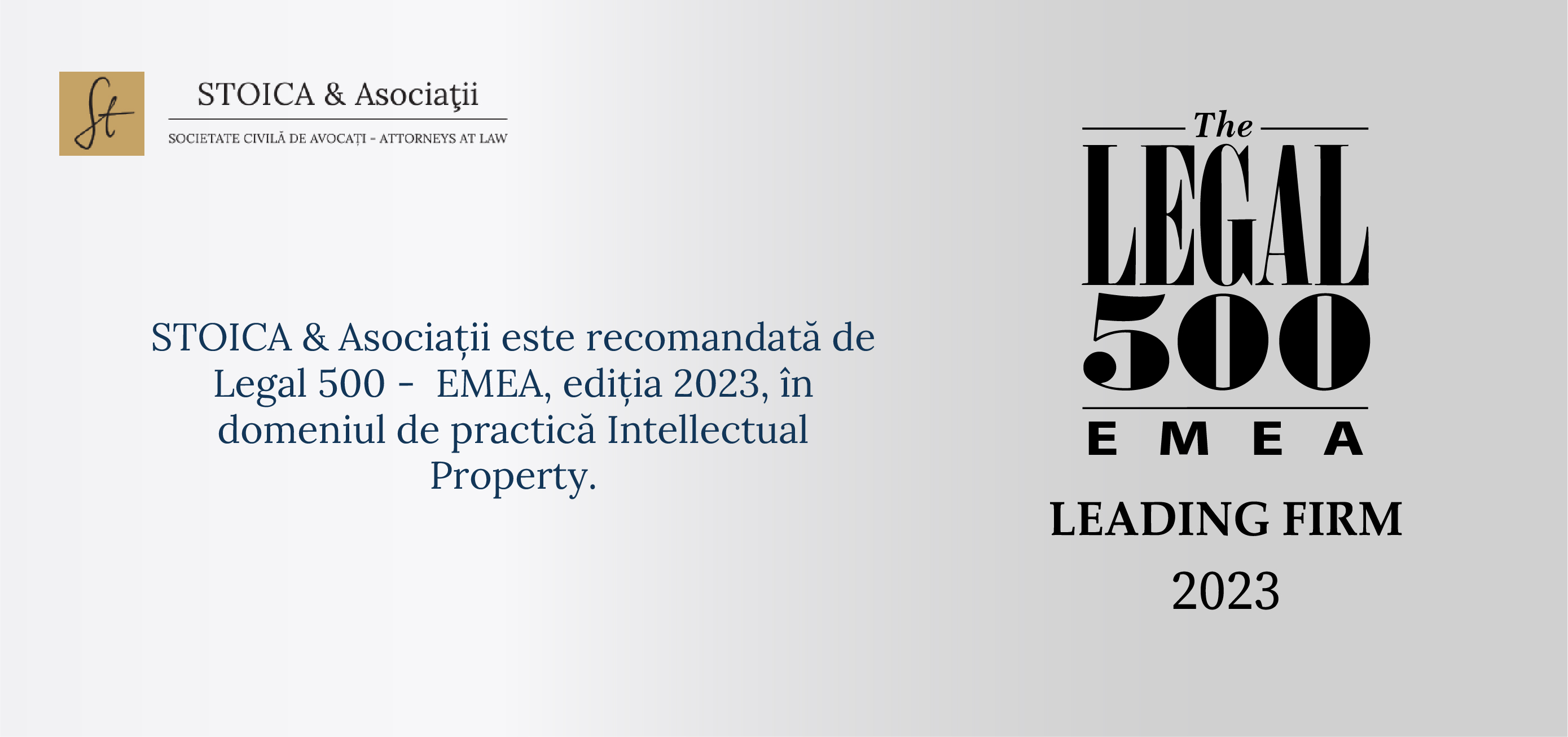 The international lawyer guide The Legal 500 recommends STOICA & ASOCIAȚII in the third echelon (Tier 3) in the field of Intellectual Property practice. The ranking can be seen here.