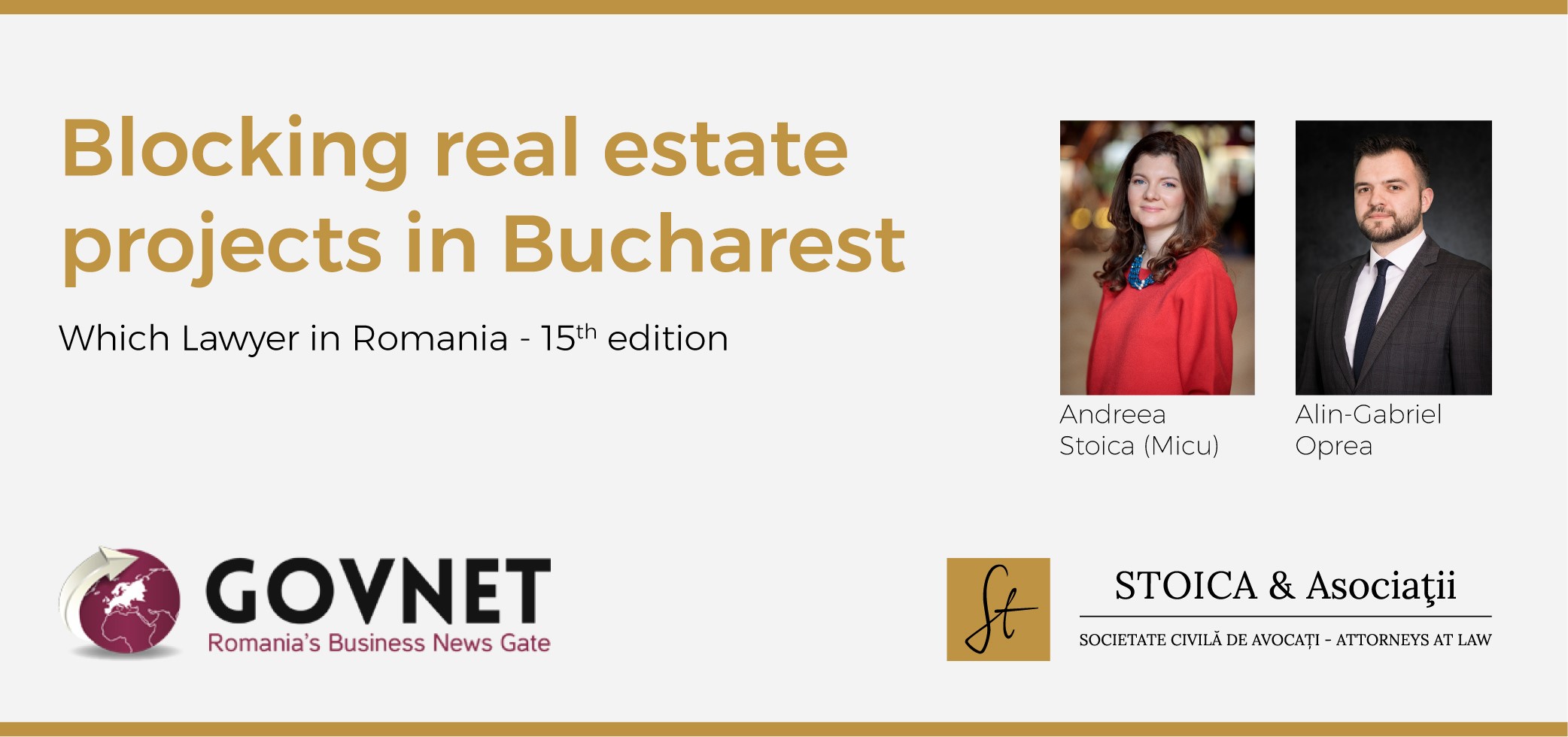 In the recent guide Which Lawyer in Romania, published by GovNet, our colleagues, Andreea Stoica (Micu) – Partner – and Alin-Gabriel Oprea – Associate, STOICA & ASOCIAȚII - have published the article "Blocking real estate projects in Bucharest", in which they analyze the legal consequences of the refusal of local authorities in Bucharest to issue decisions approving urban plans for real estate projects, which meet all the legal conditions, after following a procedure of long and complicated endorsement.