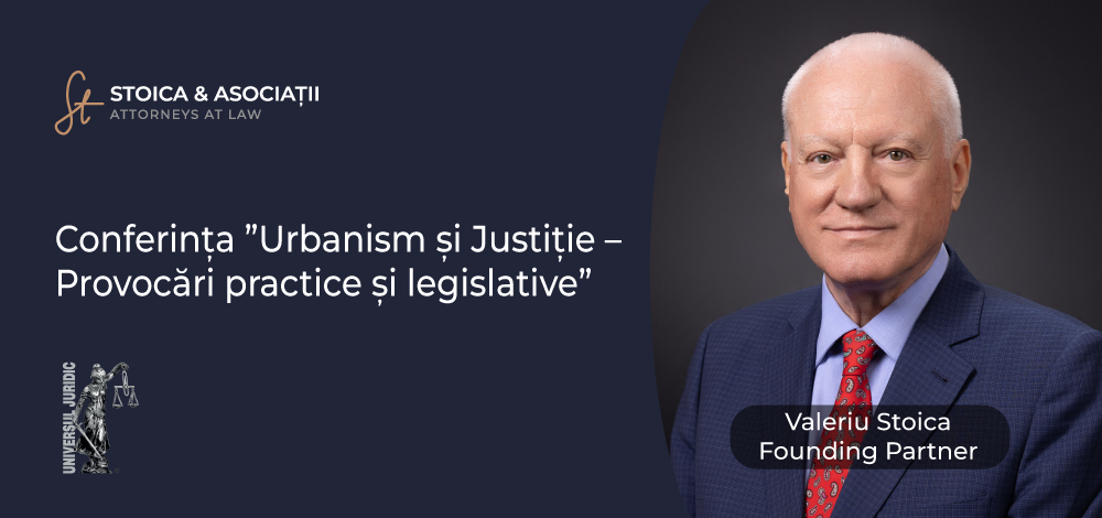 The Universul Juridic editorial group, with the support of the Romanian Senate, the Ministry of Justice, the National Union of Romanian Bar Associations and other institutional partners, is organizing on April 24, 2024, the Conference "Urbanism and Justice - Practical and Legislative Challenges". Valeriu Stoica- Founding Partner - will give a lecture in the panel "Justice District, a decade-long victory".
