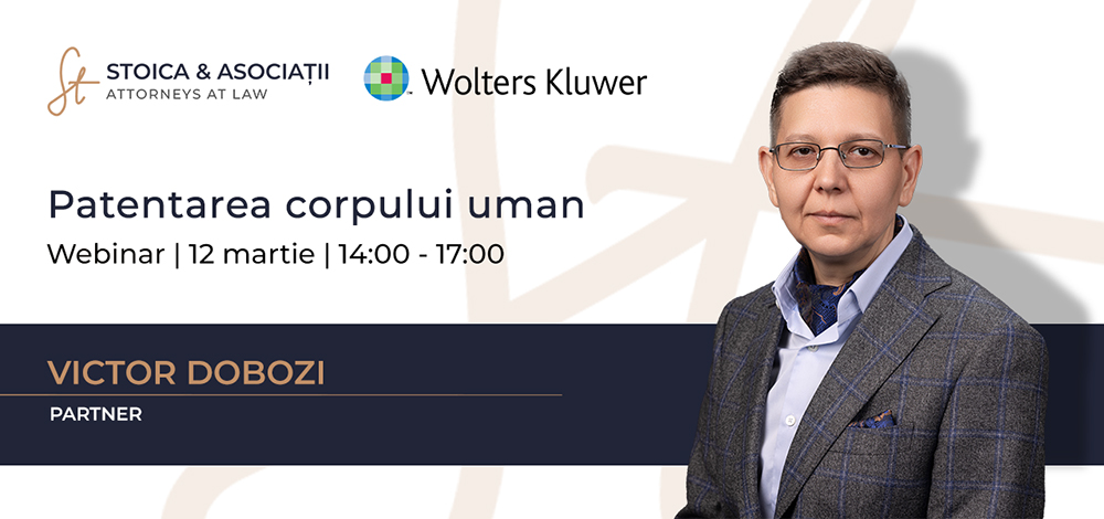Victor Dobozi – Partner - va prezenta mâine, de la ora 14.00-17.00, în cadrul webinarului Patentarea corpului uman, o analiză detaliată a legislației și jurisprudenței europene și internaționale privind brevetarea materialului biologic uman, inclusiv a ADN-ului și derivaților săi.